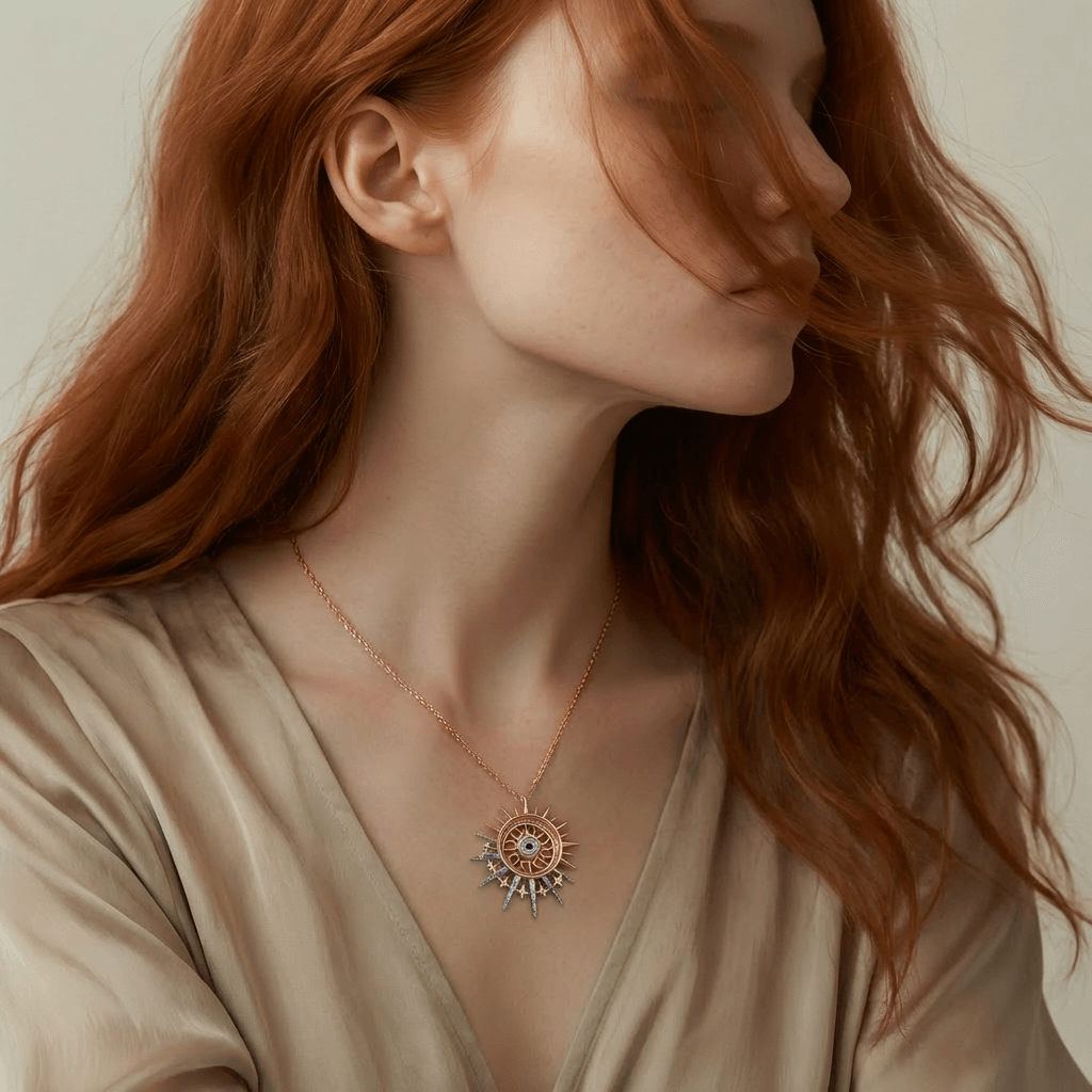 I began to imagine Apollo’s eternal and warm gaze, which led to the creation of this piece. Using polymer clay to sculpt a soulful iris and surrounding it with radiant golden rays, I wanted to capture a miniature star resting against the heart. It’s designed to be more than just jewelry; it’s a source of light for the wearer, bringing the protective strength of the sun to brighten every ordinary day.