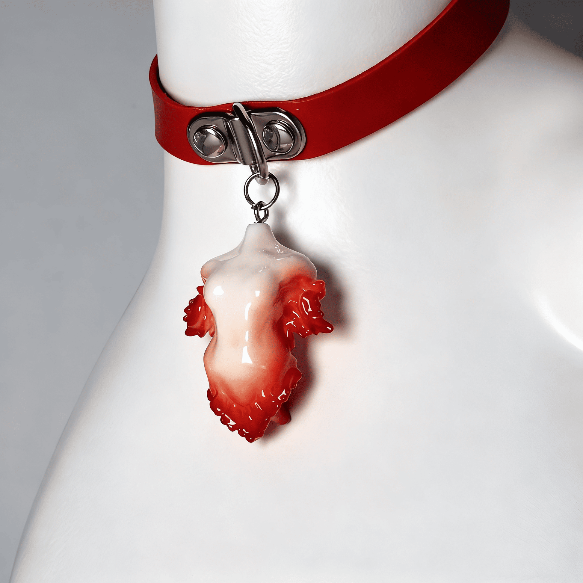 • Eco-Resin Sculpture: Each torso is hand-shaped from high-density resin, polished to a porcelain-like gloss with soft pink gradients that mimic living warmth.