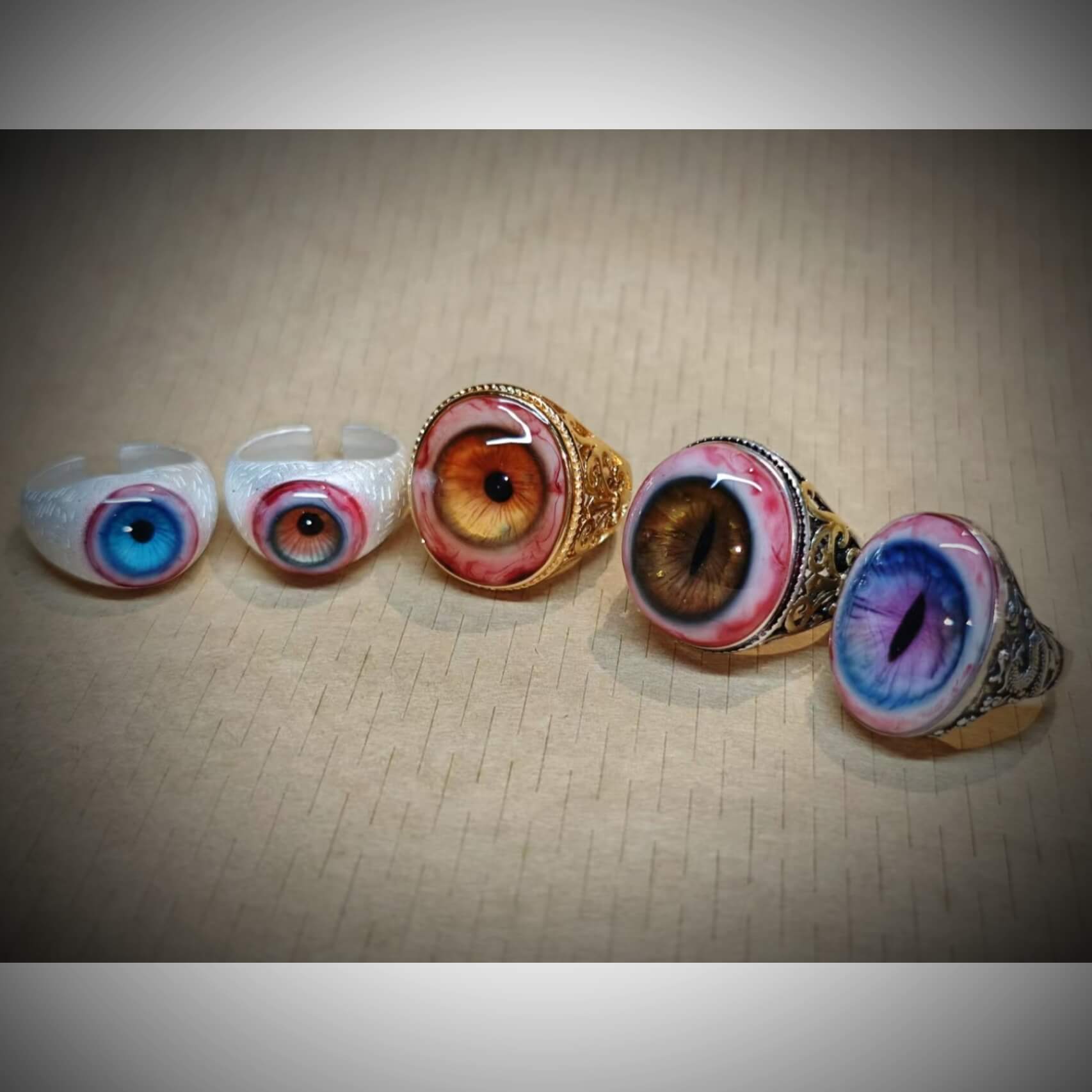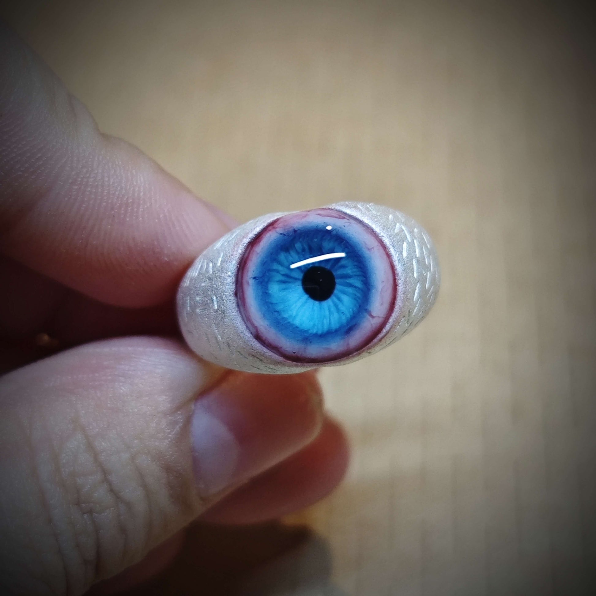 The OCEANIC GAZE ring is a mesmerizing blend of artistry and craftsmanship. The centerpiece is a lifelike eye featuring a vivid sea-blue iris paired with a bold black pupil, accentuated by realistic blood vessel detailing. Crafted with eco-friendly resin and soft polymer clay, the eye is designed for durability and stunning visual impact. The band is made from high-quality 925 sterling silver, ensuring a hypoallergenic, waterproof, and tarnish-resistant finish.