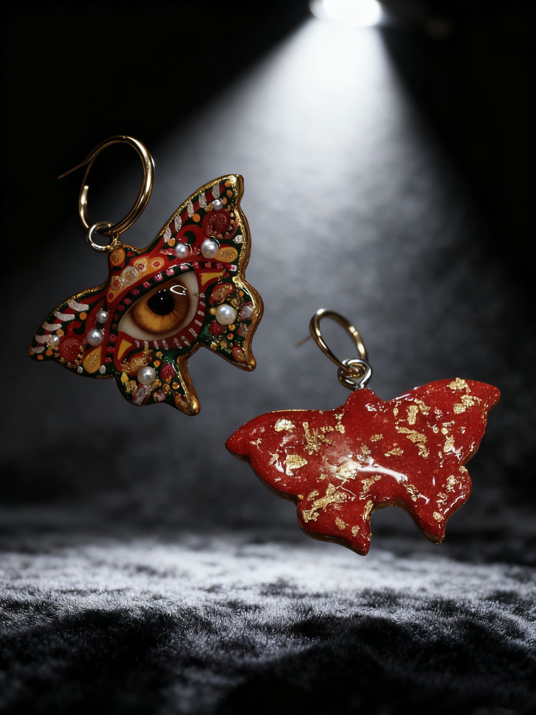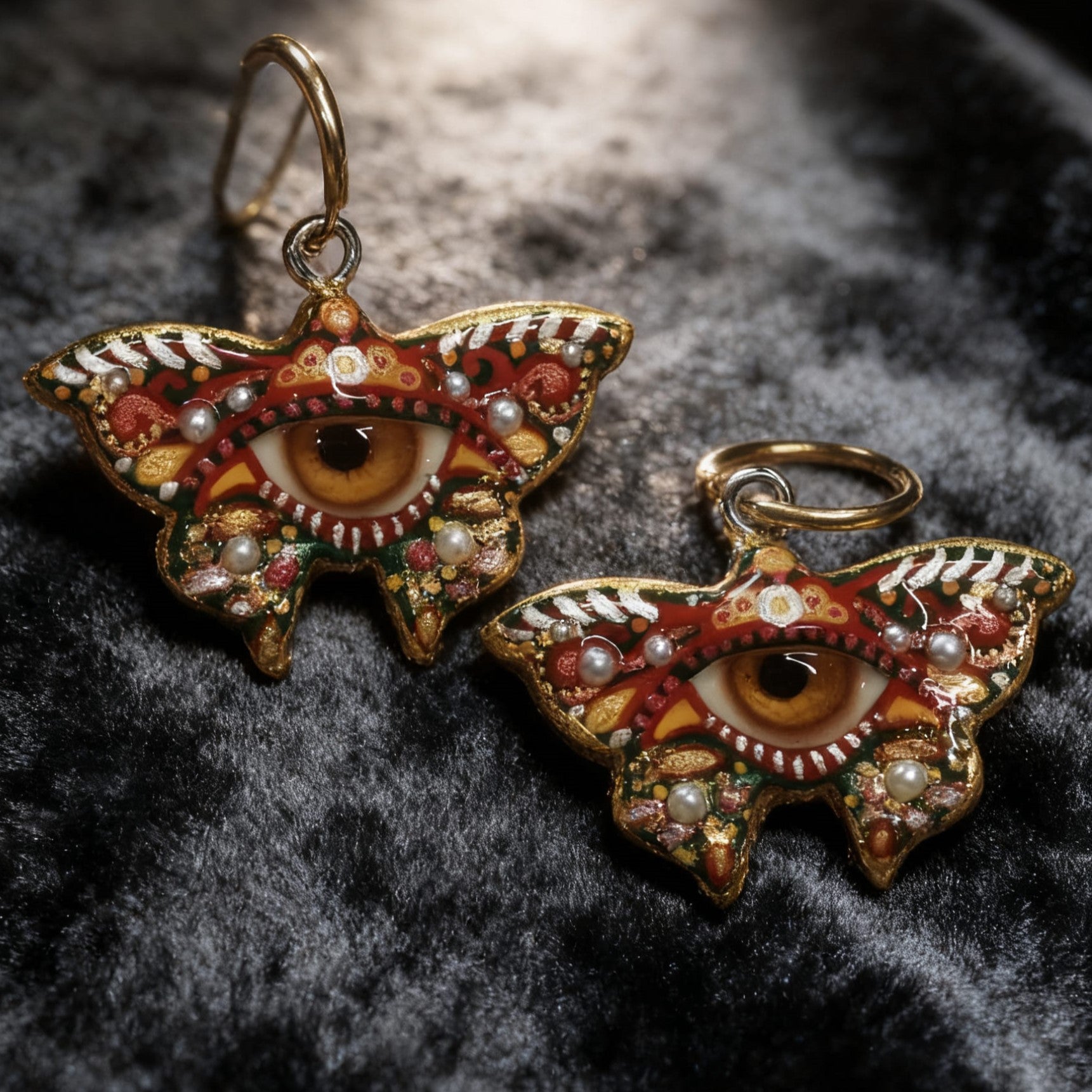 Every butterfly and eye detail is painted and sculpted by hand, creating a wearable story that flutters between dream and reality.