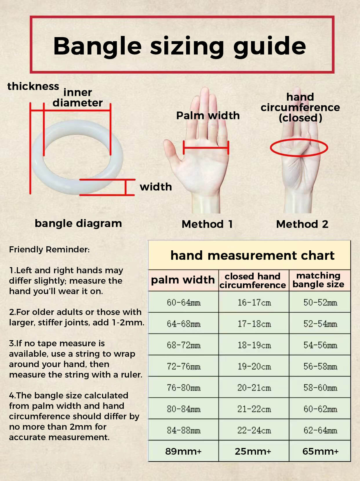 Bangle Diameter Options: Available in eight sizes to ensure a perfect fit: