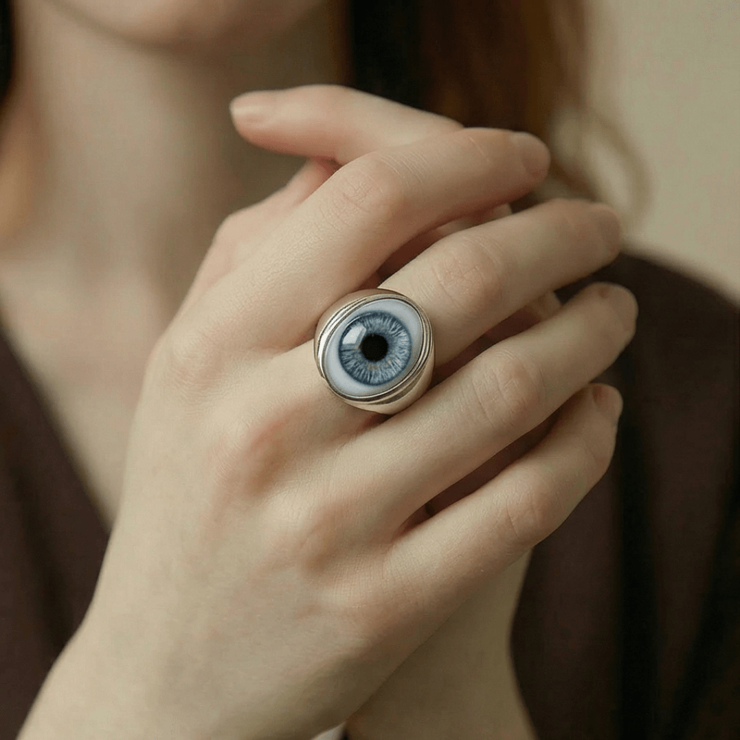 This design eschews sharp industrial edges for weighted, fluid metallic lines that mimic the patina of time. Like a rediscovered heirloom, it features a soulful eye that stands as a silent witness to the wearer's every elegant moment.