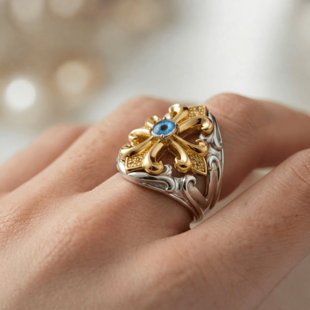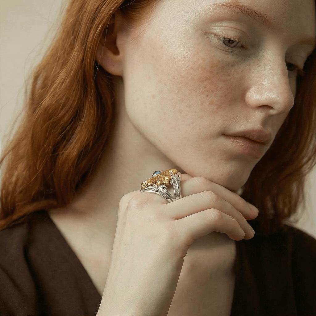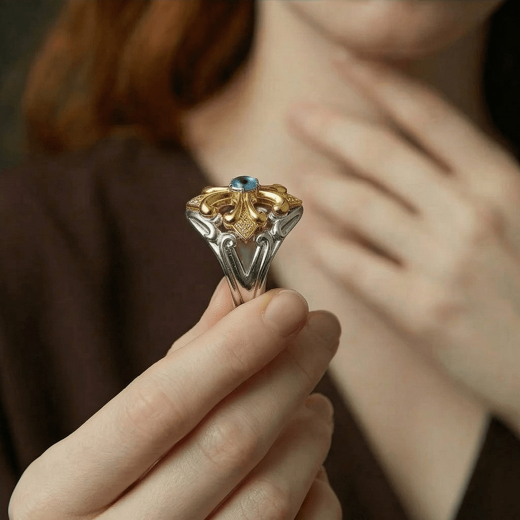 Aesthetic: Ornate architectural statement ring.
