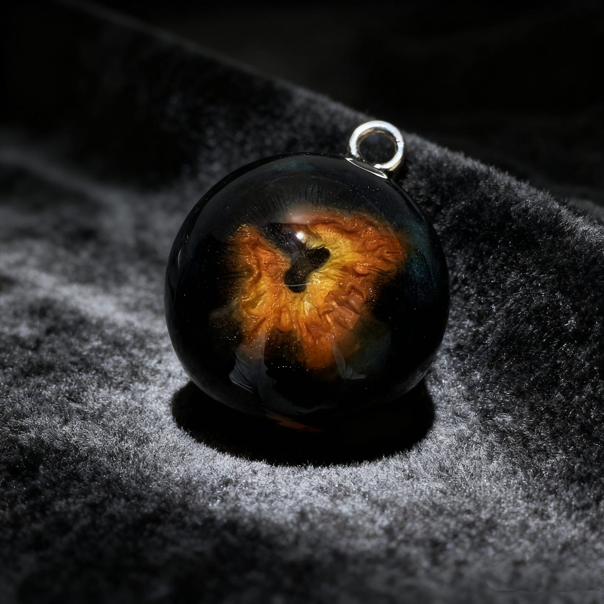 Pendant Details: The eyeball measures approximately 3 cm in diameter, featuring a purple iris with blue glitter, a black pupil, and a surface adorned with transparent water droplets.