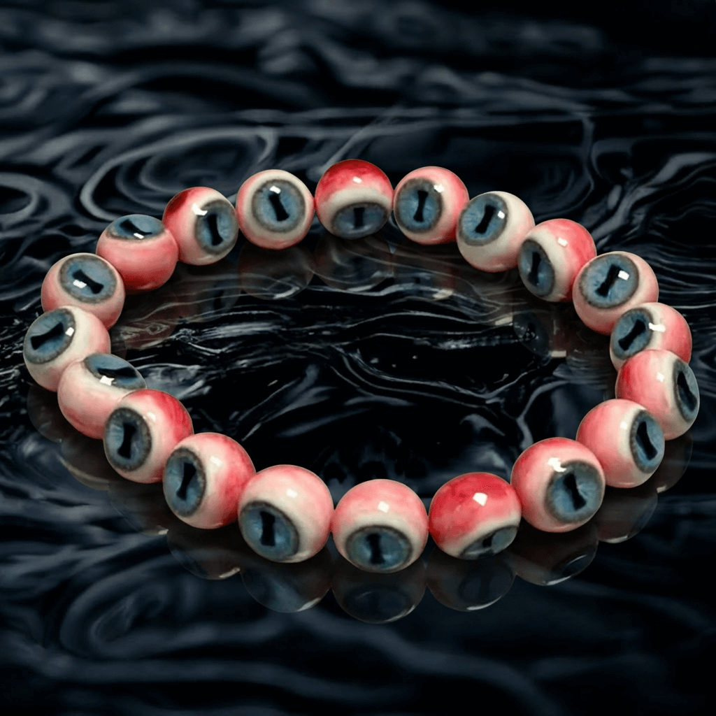 Consists of 20 hand-sculpted eyeball beads featuring sky-blue irises and horizontal slit pupils. Finished with lifelike blood vessel detailing and a waterproof, hypoallergenic coating to ensure long-lasting wear.
