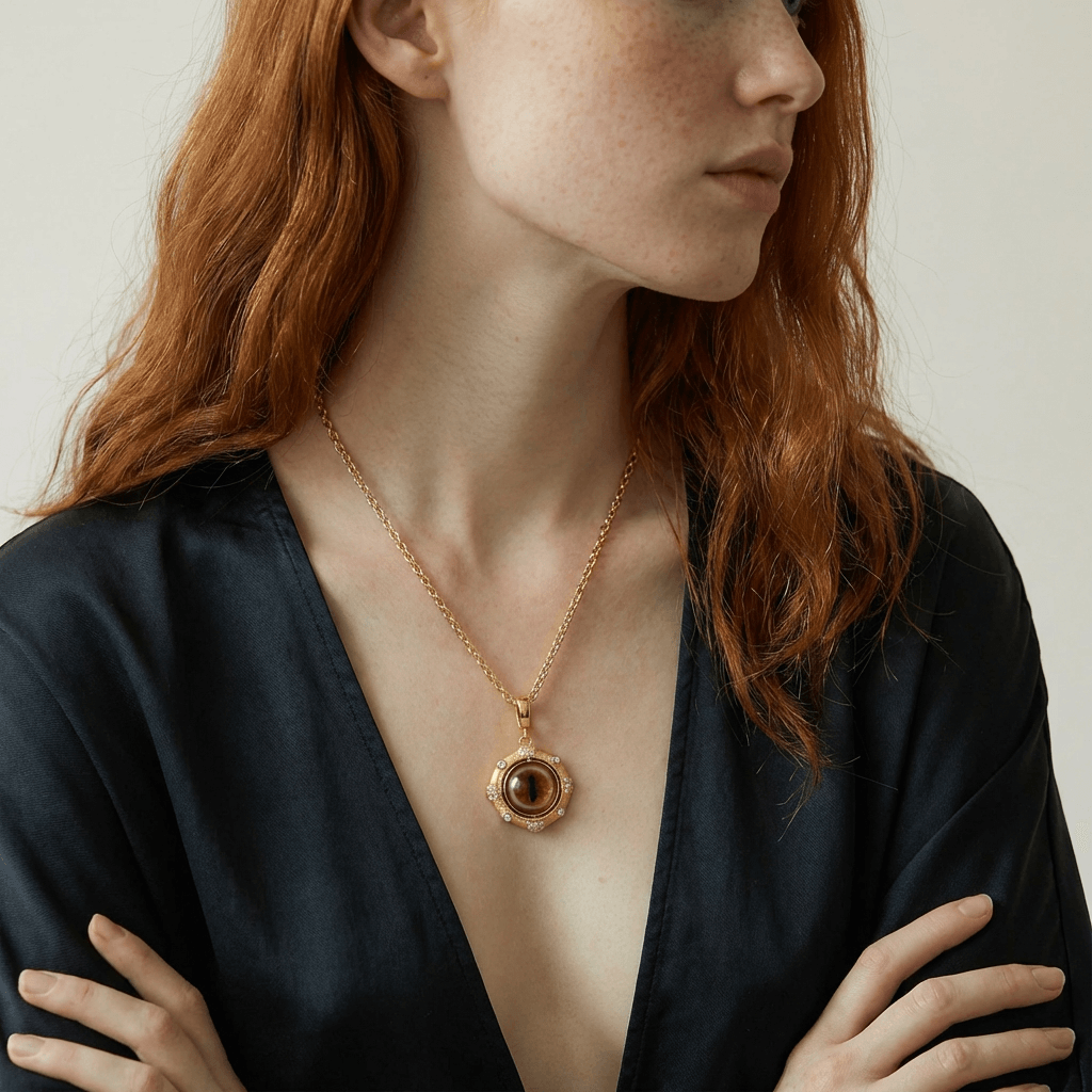 I was re-watching the film with a friend, and we were struck by how mesmerizing and terrifying that golden gaze was—ancient, greedy, yet undeniably majestic. I wanted to capture that split second of awakening. Using polymer clay, I sculpted the vertical slit pupil to look as if it’s tracking your every move. Encased in a vintage gold setting studded with gems, this necklace isn't just an accessory; it’s a piece of the dragon’s treasure, worn by those who have a fierce spirit to guard what is theirs.
