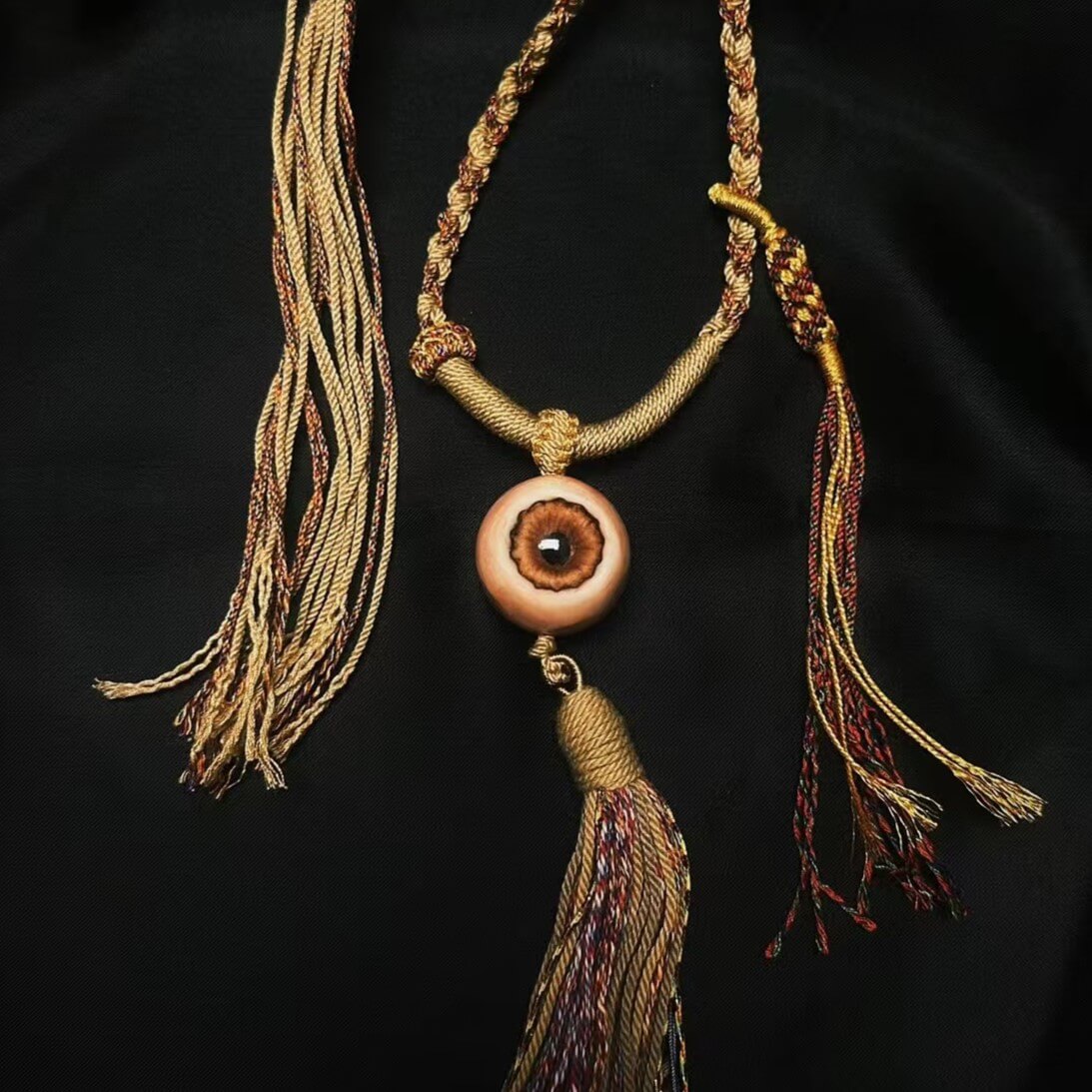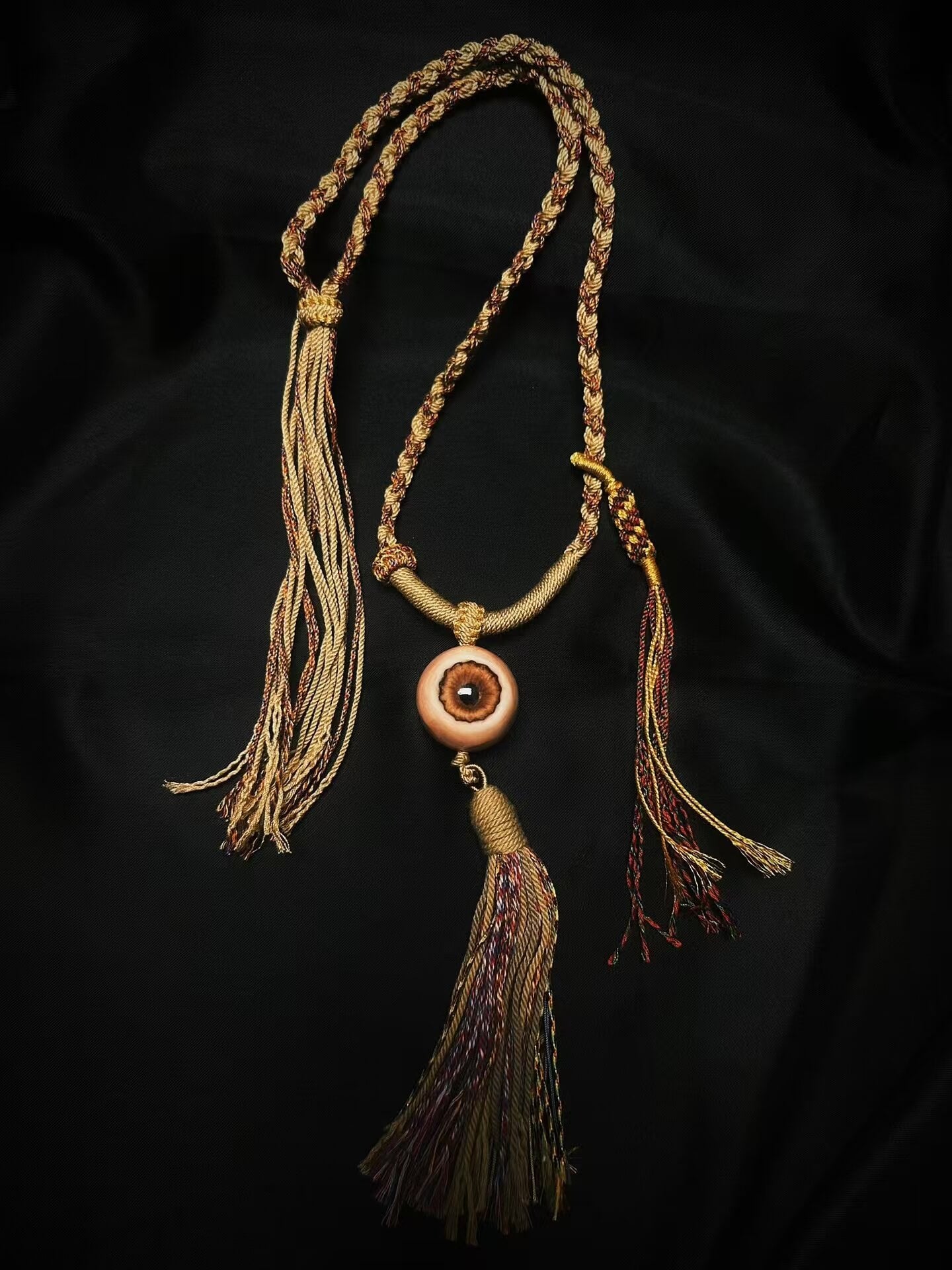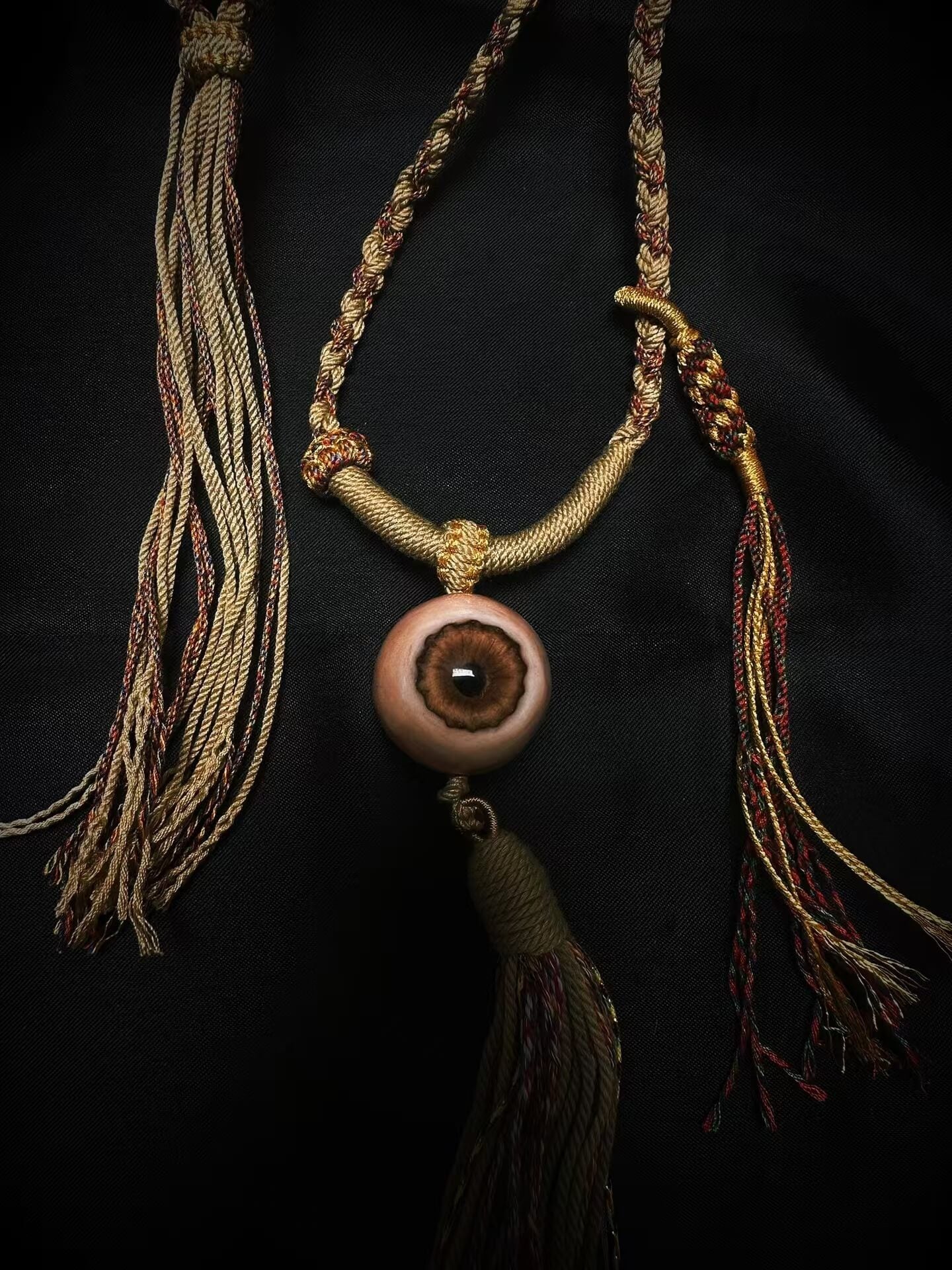 Unique Design: The intricately detailed eyeball pendant and handwoven tassel cord create a striking, one-of-a-kind aesthetic.